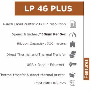 TVS LP 46 Plus 4 inch Thermal Label Printer, Speed 150 MMs, USB + Serial + Ethernet