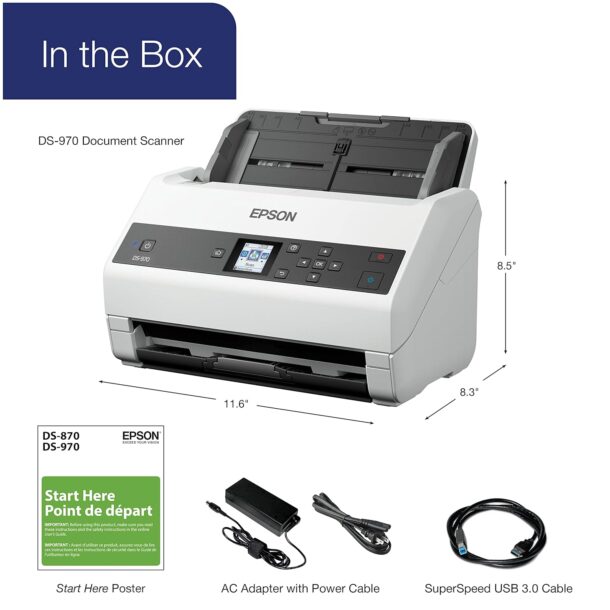 The Epson WorkForce DS-970 is engineered for high‑volume workgroups requiring reliable, lightning‑fast document capture. With single‑pass duplex scanning at up to 85 pages per minute (170 images per minute) and a generous 100‑sheet Automatic Document Feeder, the DS‑970 tackles large batches with ease and precision .